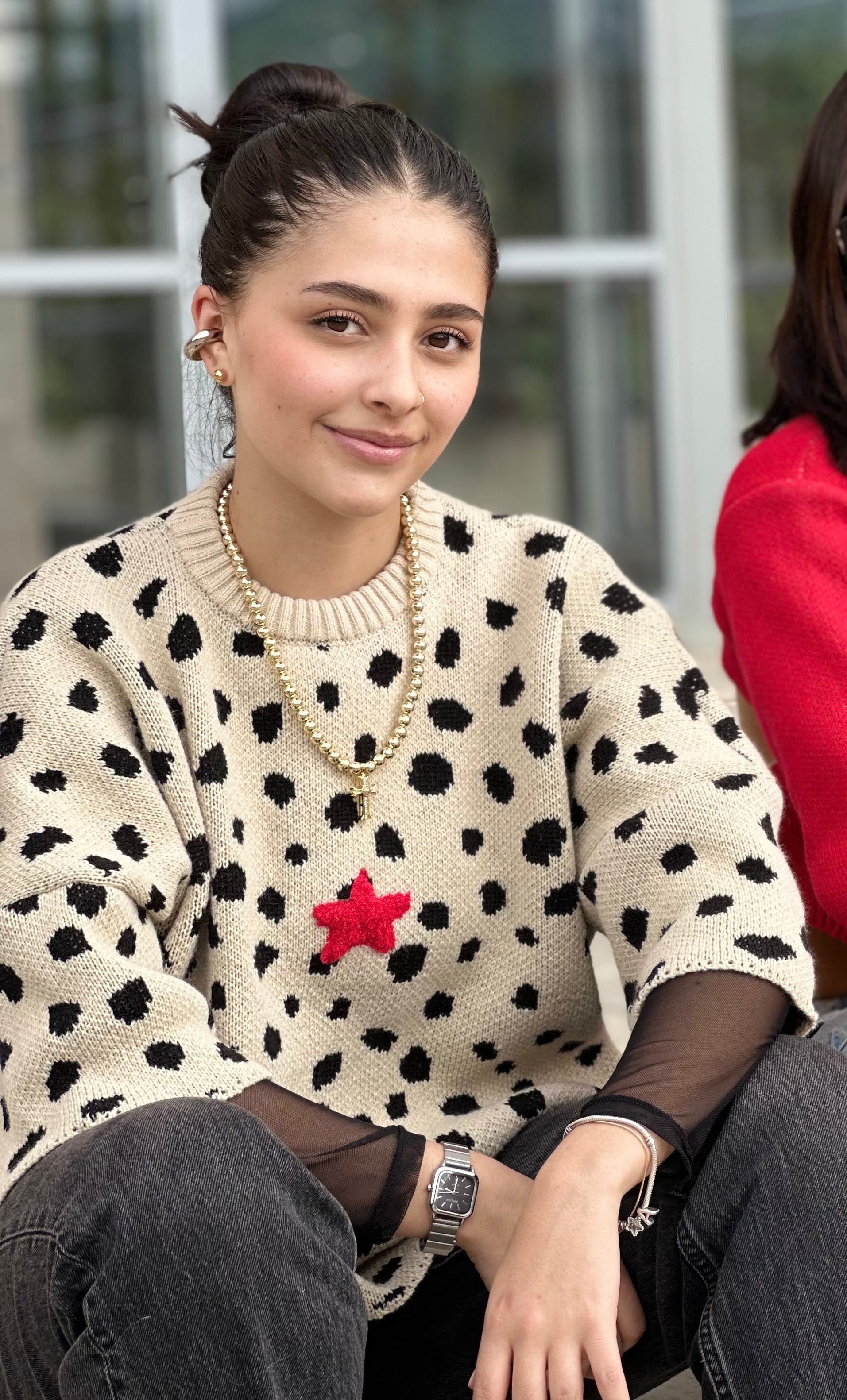 camiseta fit oversize tejida en hilo acrílico, con bordado delantero hecho a mano bajo técnica punch needle.