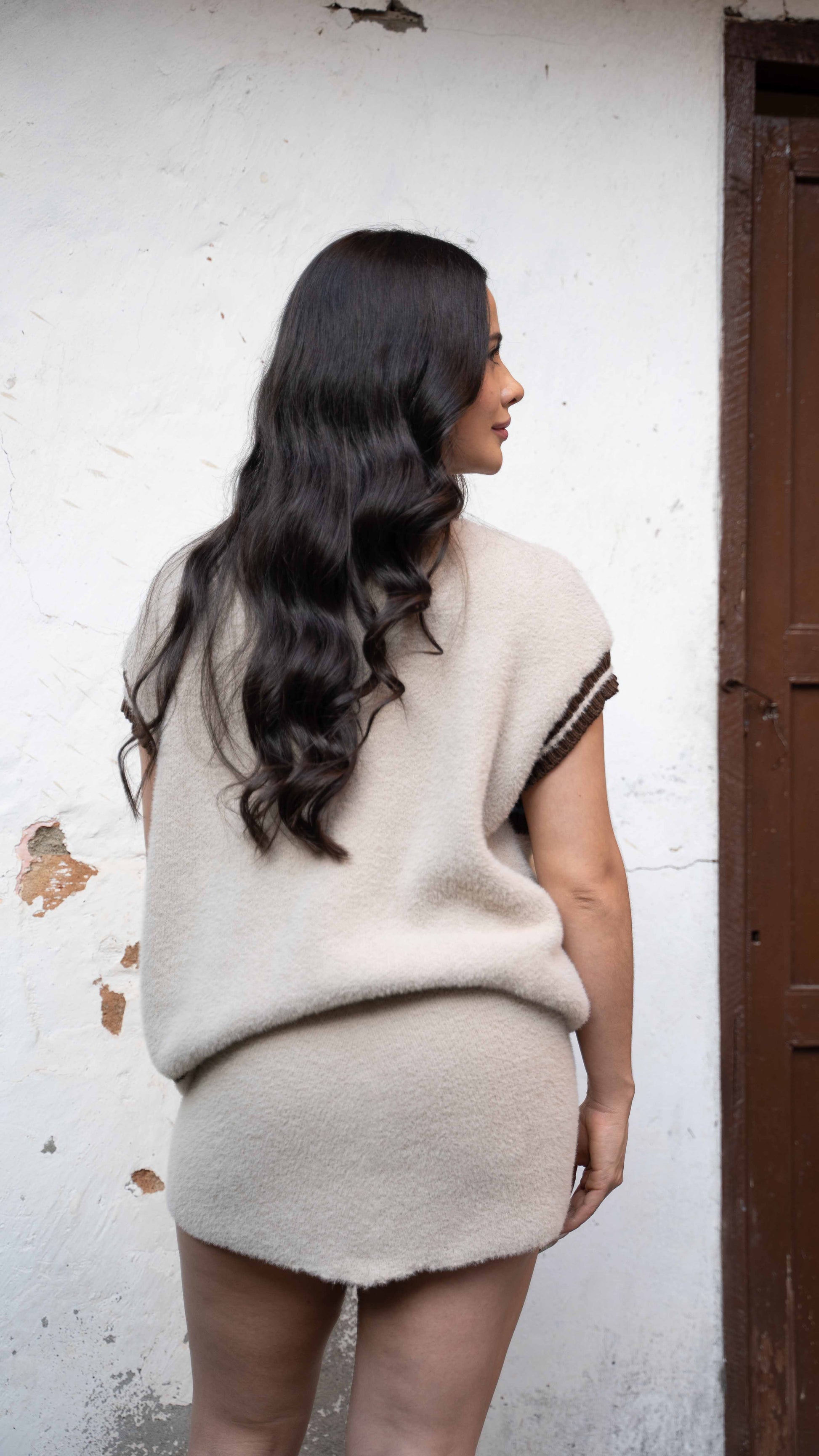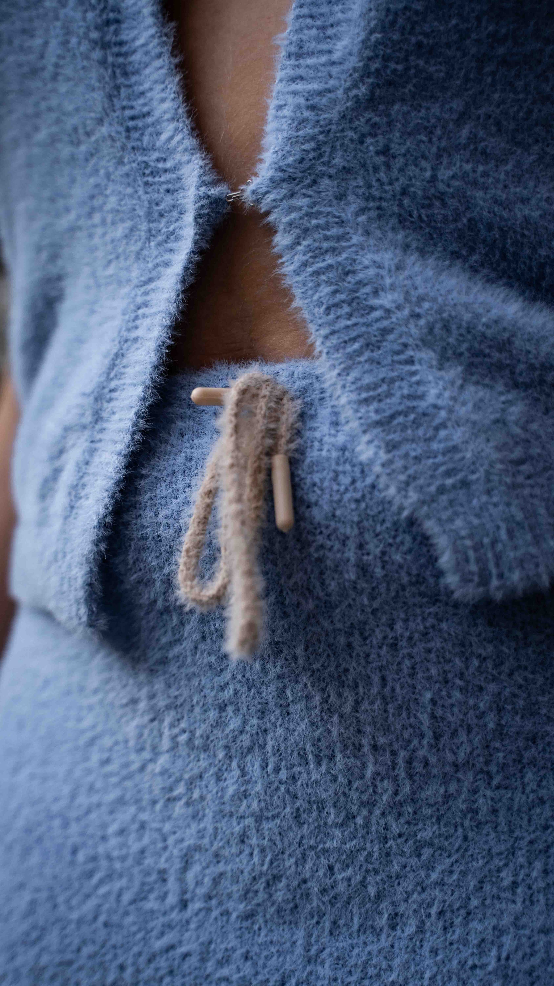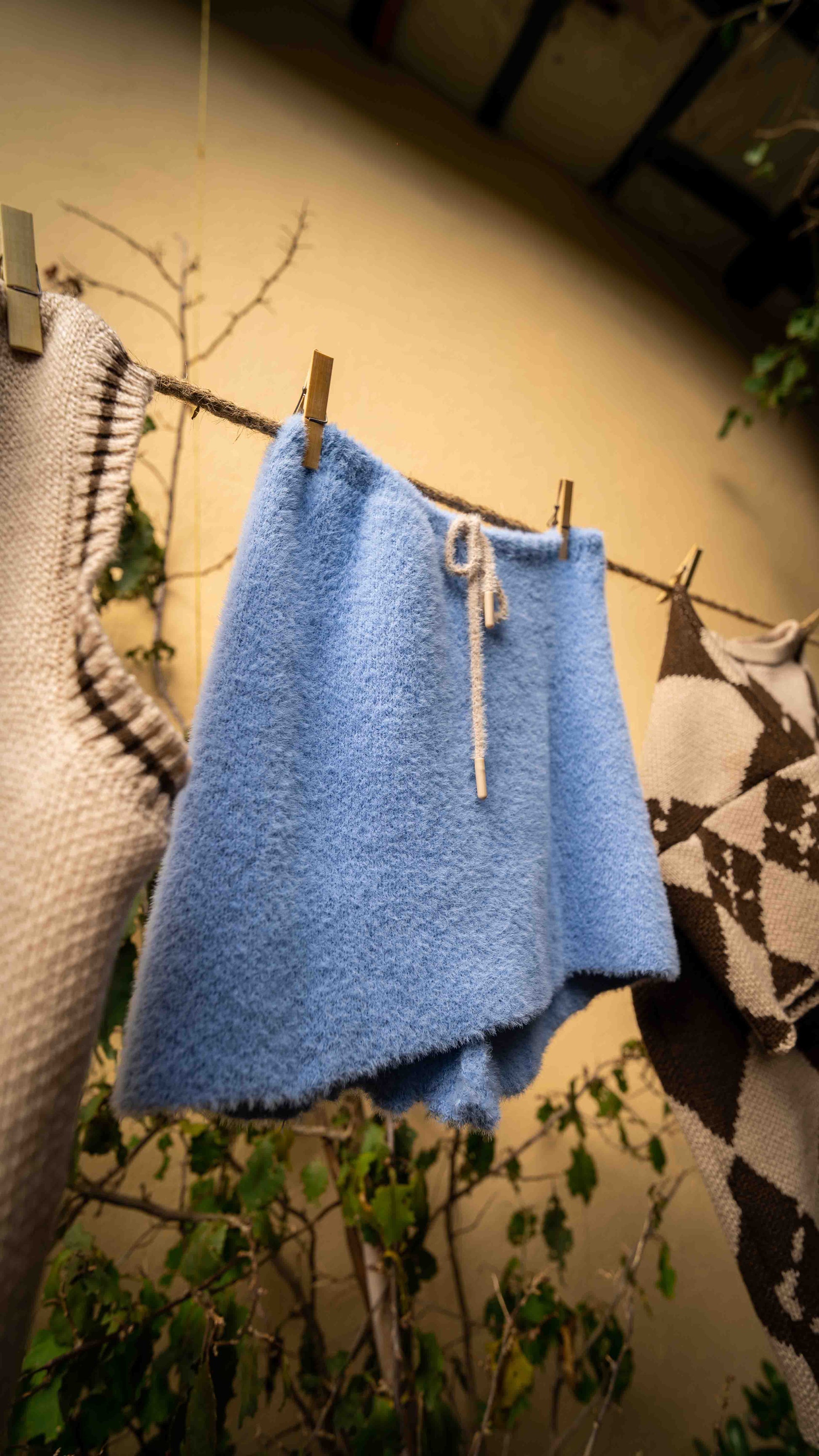 Falda Solar confeccionada en piel de durazno, con cordón ajustable en la cintura que permite un fit personalizado.