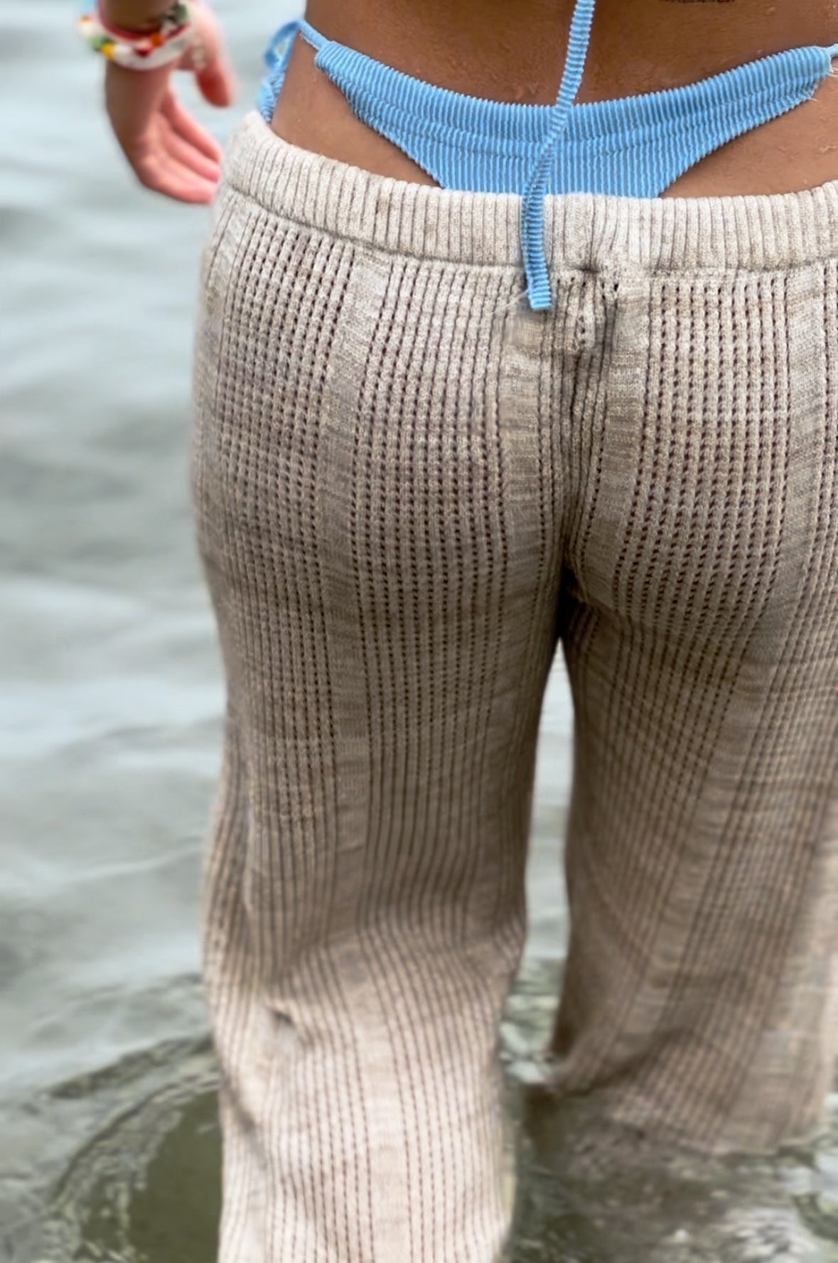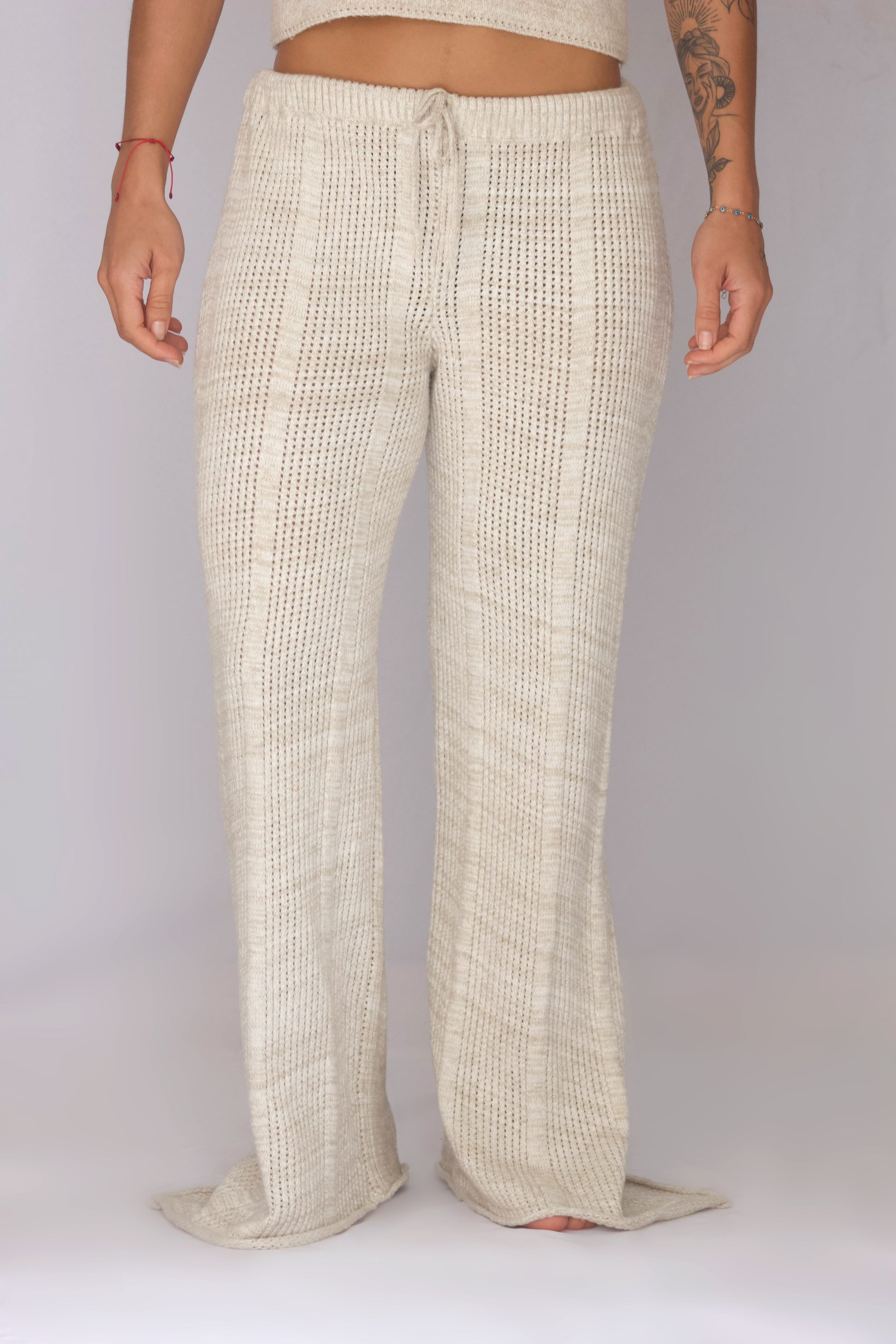 Pantalón tejido en viscosa, cordón ajustable en cintura, tiro bajo, tejido tipo menguado. Es un tejido fresco y liviano