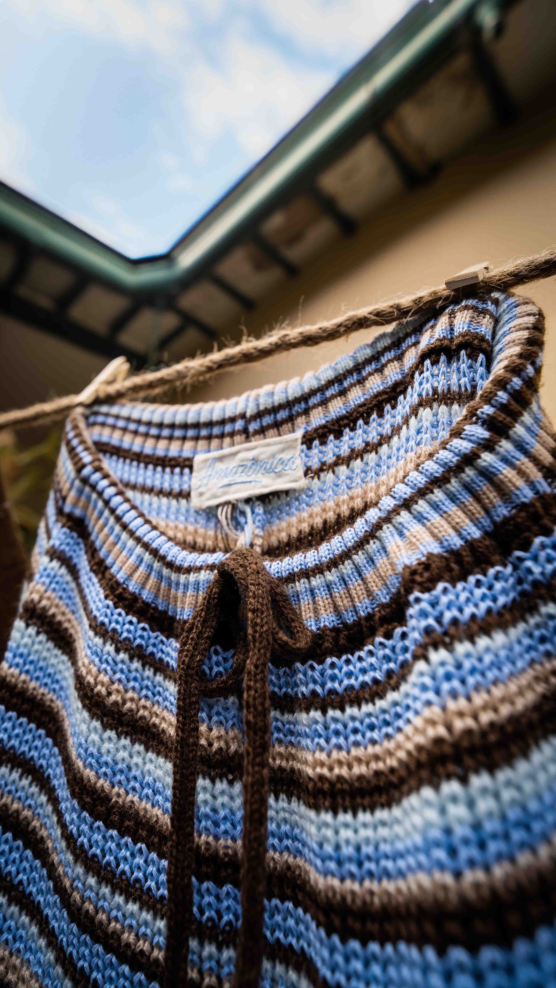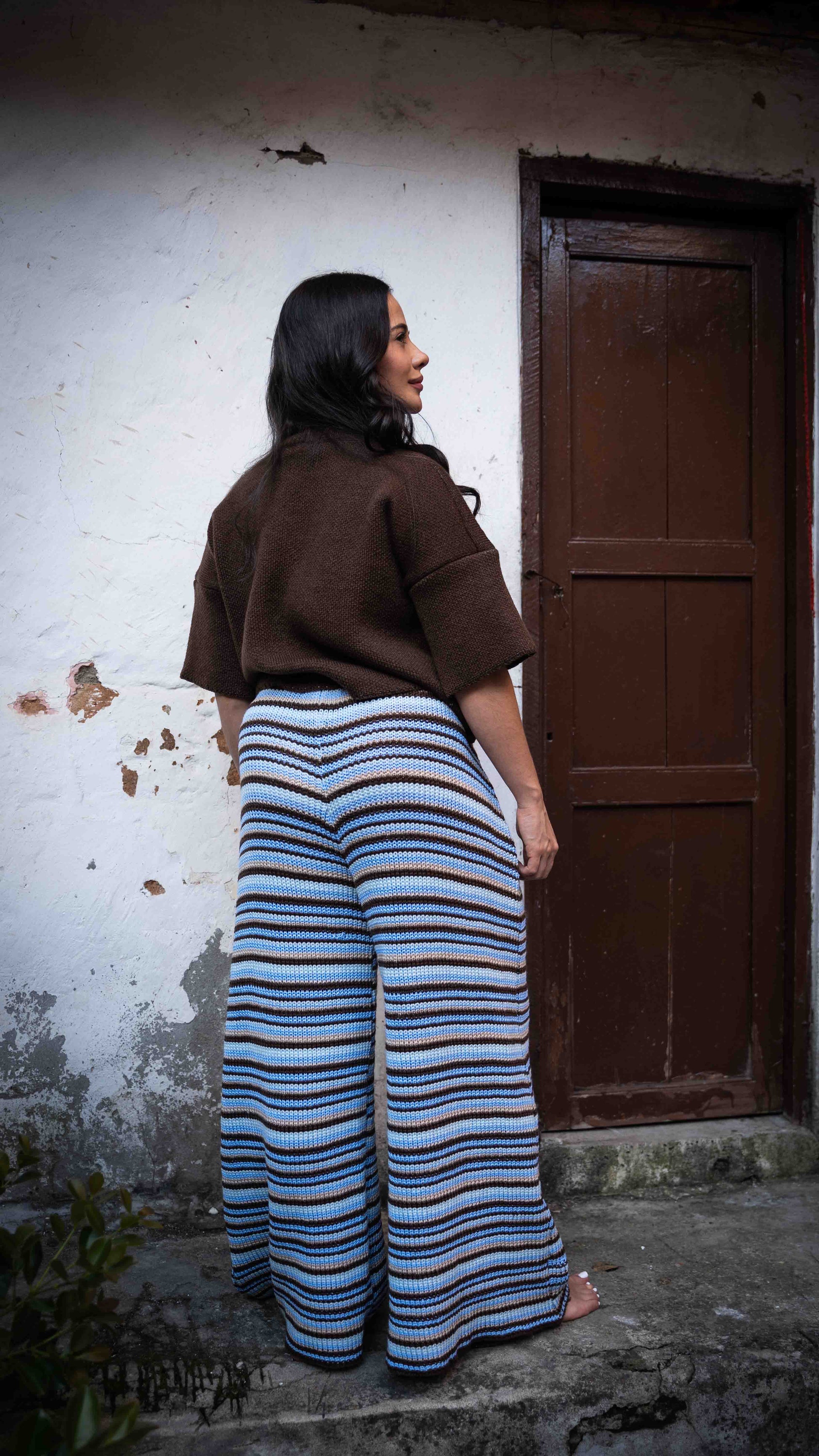 Pantalón en hilo acrílico, tejido tipo inglés, con cordón ajustable en la cintura, horma suelta, a 4 colores.